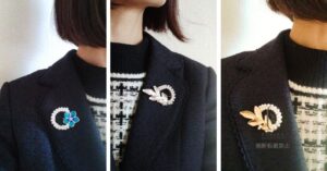 暗くなりがちなスーツ、ちょっと物足りない時におすすめなのがブローチです。